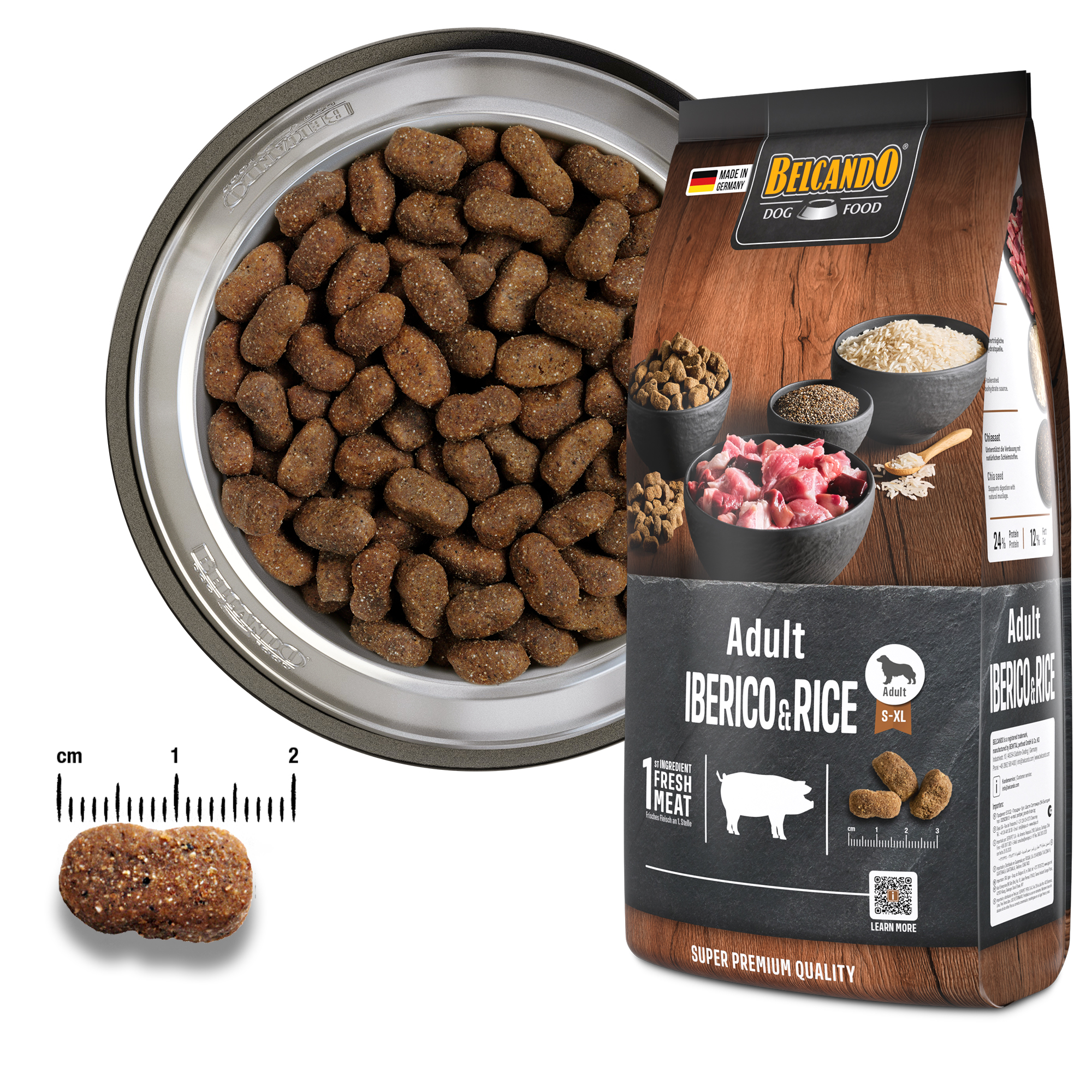 BELCANDO Adult Iberico & Rice wordt aangevuld met waardevolle ingrediënten en superfoods zoals chiazaad, dat natuurlijke slijmstoffen en omega-3-vetzuren levert. Zo is het recept optimaal afgestemd op de behoeften van volwassen honden.